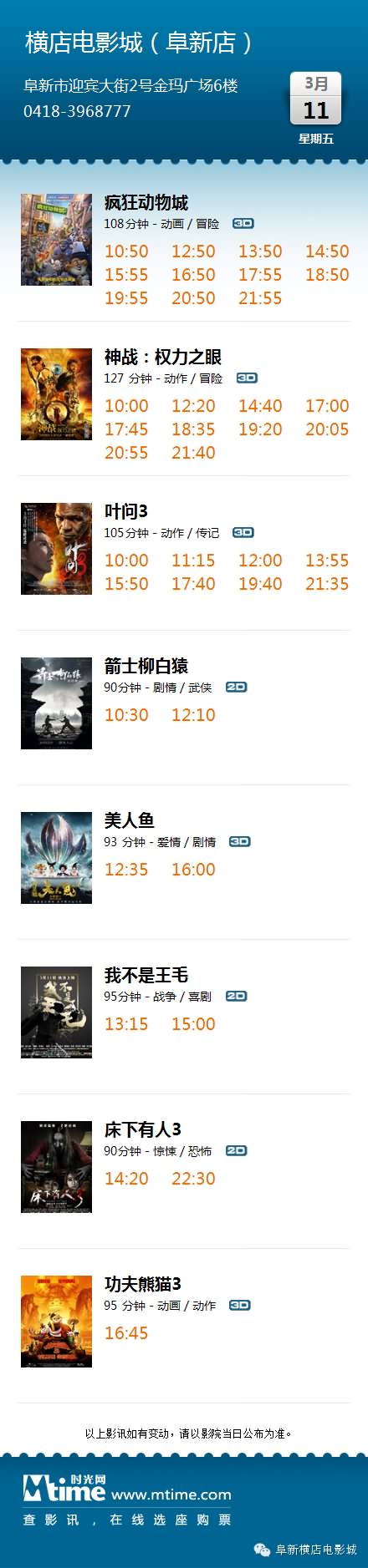 注:若本影讯若有更改,以影院现场公告为准。咨询电话:0418-3968777
