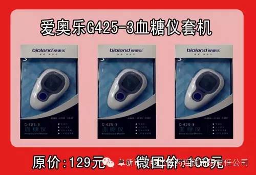 9、爱奥乐G425-3血糖仪套机(带50片试纸)原价129元微团价:108元