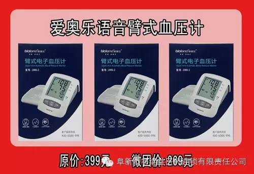 3、爱奥乐语音臂式血压计原价399元微团价:269元