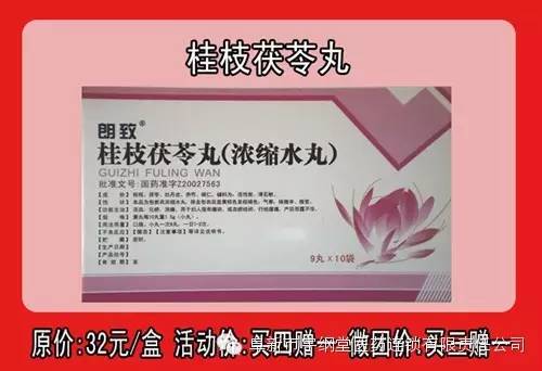 2、桂枝茯苓丸原价32元/盒活动价:买四赠一微团价:买三赠一