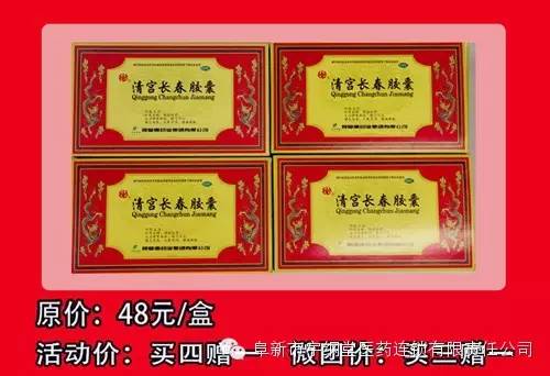 1、清宫长春胶囊原价48元/盒活动价:买四赠一微团价:买三赠一